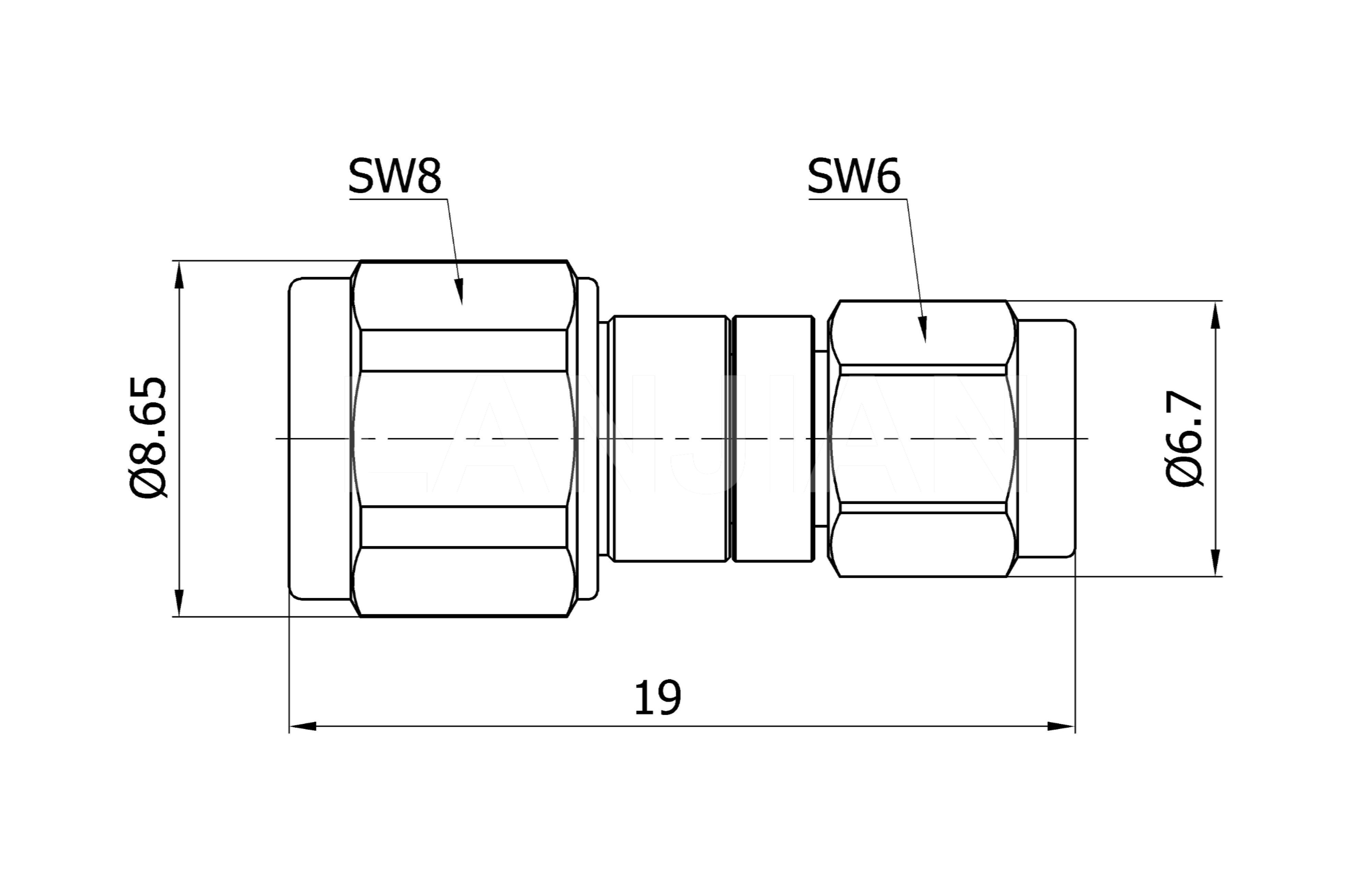 商品描述:1.0mm male to 1.35mm male straight adapter,90GHz
