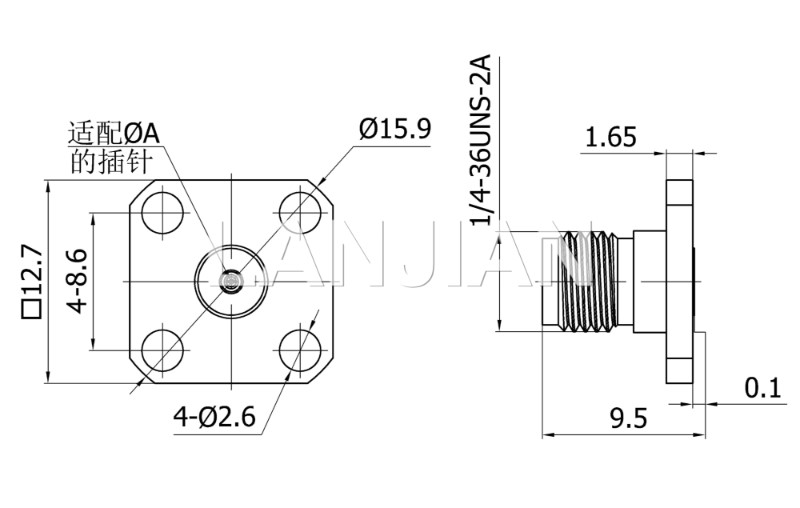 商品描述:2.92mm straight jack connector,40GHz