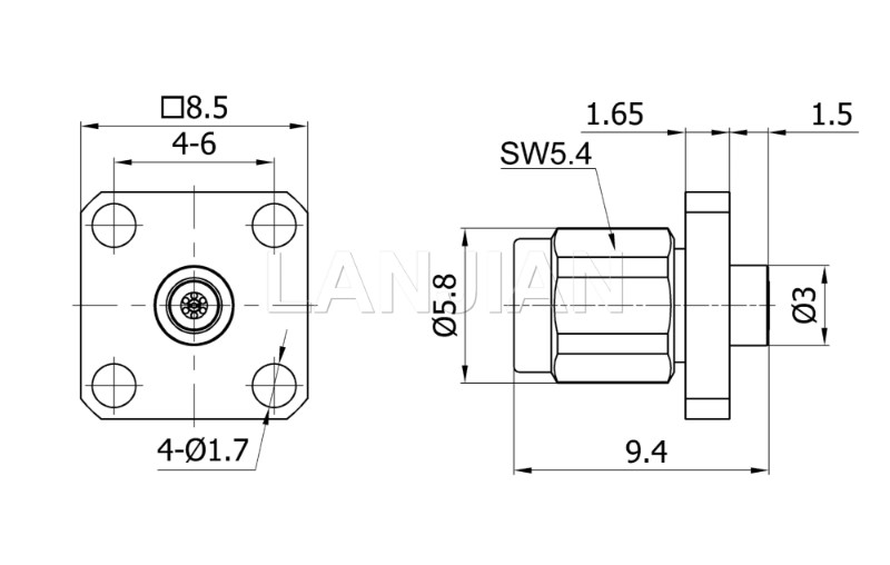 商品描述:1.0mm straight pin flange connector,110GHz