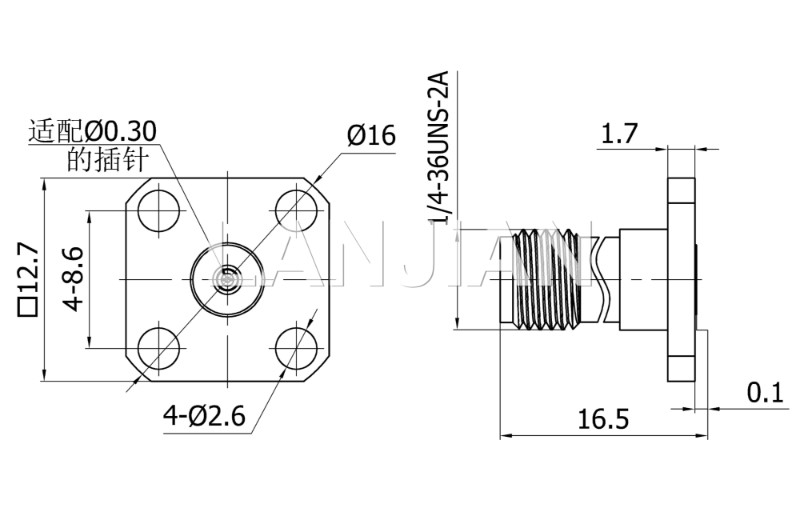 商品描述:2.92mm straight jack connector,40GHz